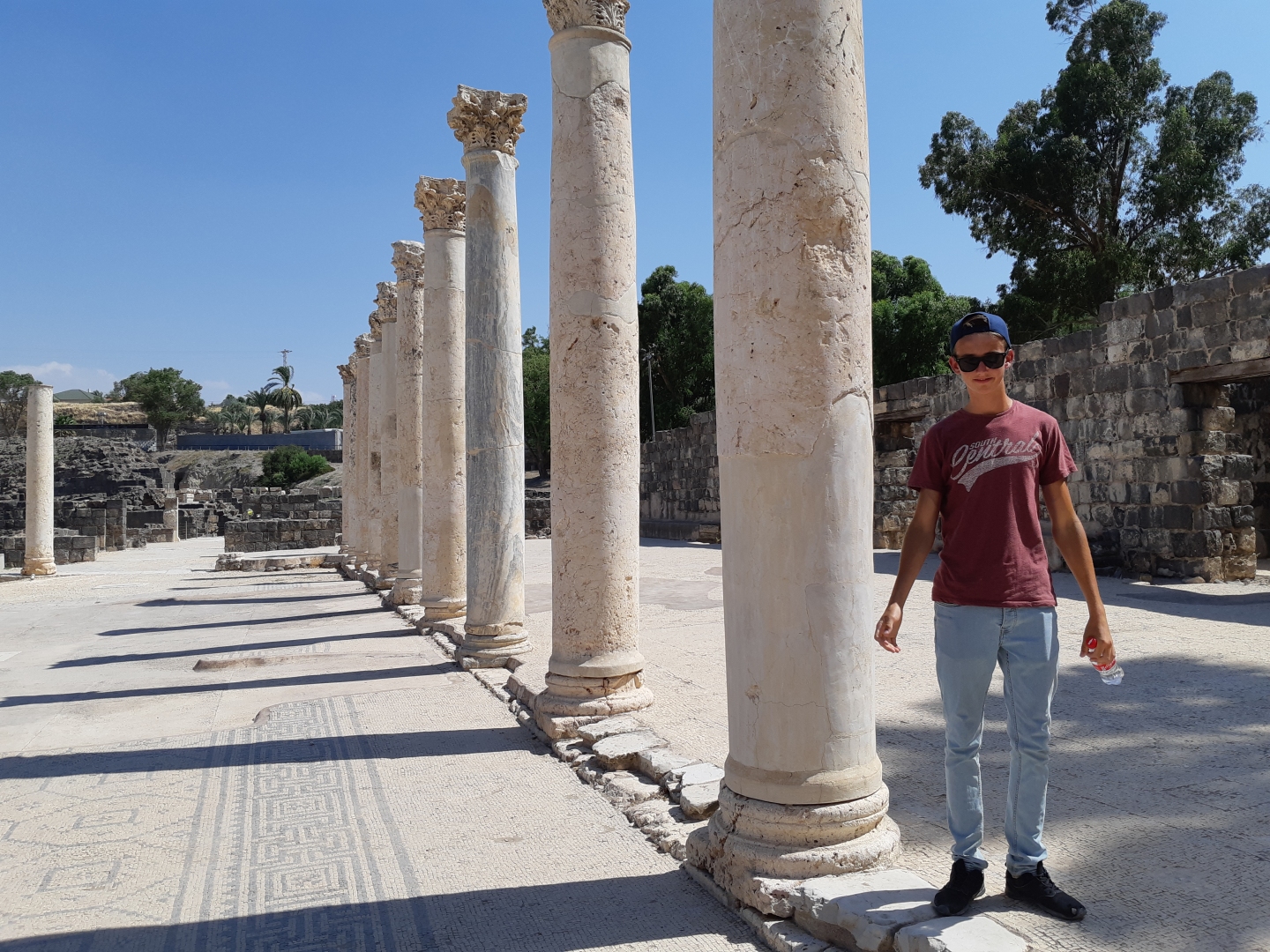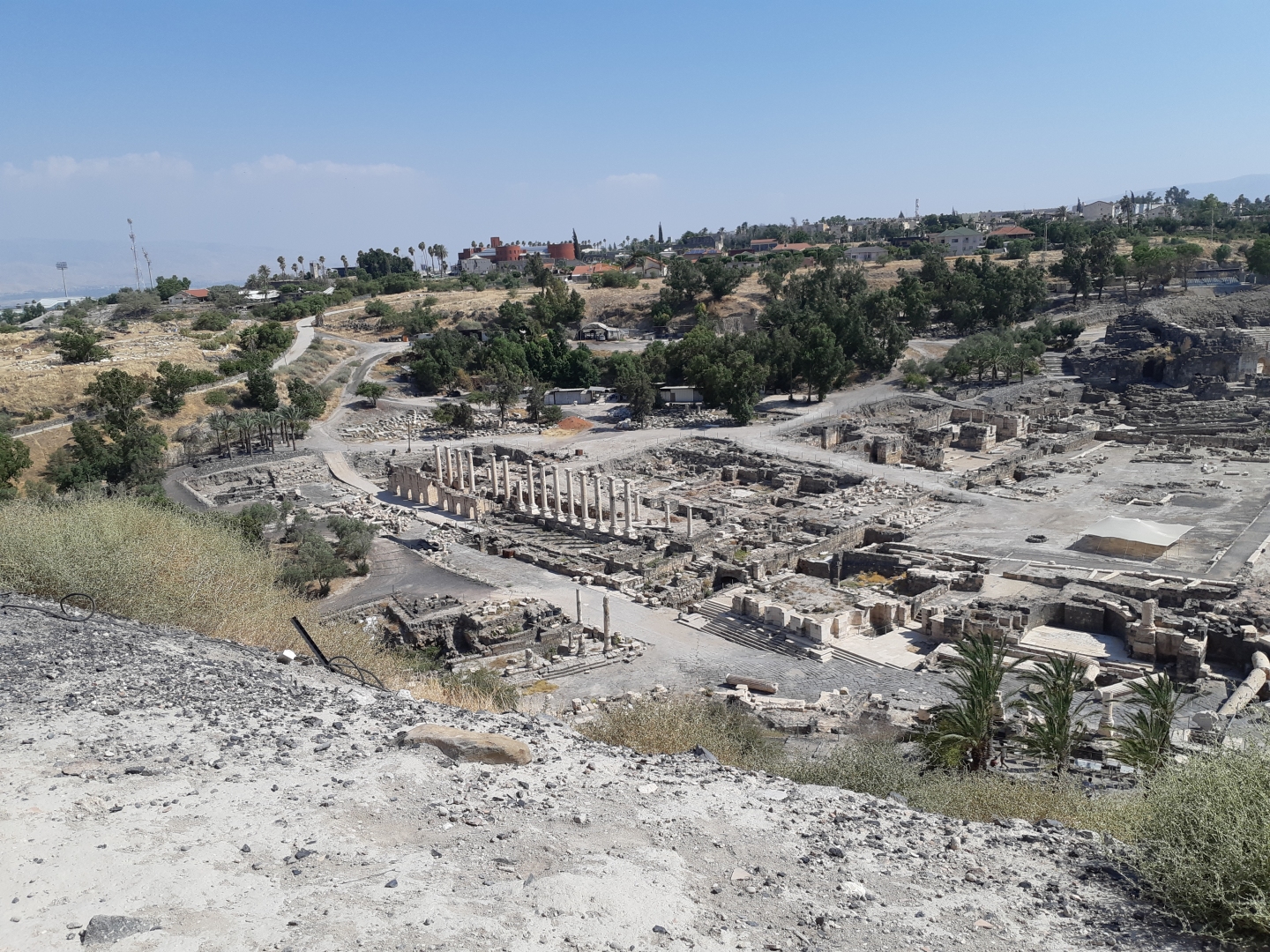 Op de heenreis naar ons nieuwe vakantieoord hebben we nog een bezoek gebracht aan Bet Shean, bij de Jordaan, vlak bij Jordanië. Het is een belangrijke stad geweest in de oudheid waar nu niet veel meer dan ruïnes van over is. Met ons waren er nog 5 bezoekers in het hele park. Misschien vanwege de hitte, want het was meer dan 40 graden!