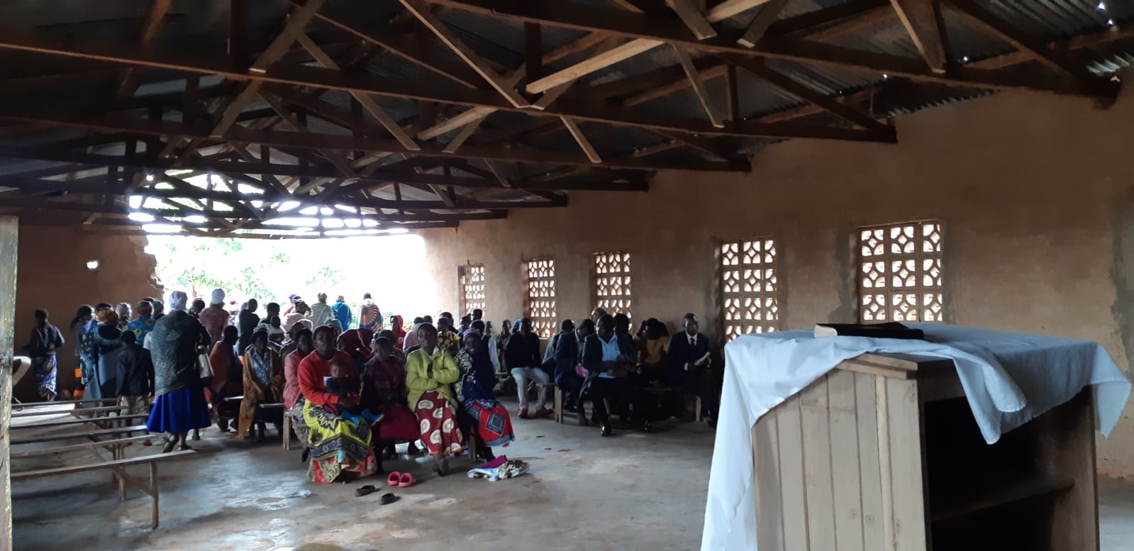 Zondag 24 maart 2019: Na een goede nachtrust en een heerlijk ontbijt werden we om 8.30 uur opgehaald door ds. Van der Bas en zijn vrouw met een vertaler voor het bezoeken van een kerkdienst. Ook het echtpaar Jansen uit Kruiningen reed met hun kleine jongen mee. Onderweg zagen we verschillende theeplantages die door Indiers worden gerund. Na een rit van een uur kwamen we bij het kerkje van ds. Kuntaga aan. Door de heftige regenval was de muur aan de achterzijde eruit gevallen! Om 10.00 uur toen de dienst begon, zat de kerk nog niet vol, maar tijdens de dienst werd het steeds drukker! Af en toe regende het behoorlijk en kwam het water ook het kerkje binnen. Eerst hield ds Van der Bas een leerdienst uit de Shorter Catechisme en daarna hield ds. Kuntaga een preek. Doordat het vertaald werd in het Engels konden we het goed volgen. Uiteraard hebben we ons in de dienst ook voorgesteld en de groeten uit Nederland overgebracht. Na de dienst van zo'n twee uur werd ons in de nabije kleine woning van ds. Kuntaga een lekkere maaltijd voorgeschoteld. Vervolgens bracht ds. Van der Bas ons weer op ons verblijf in Blantyre. Hij woont een uur verder in Zomba. In de avond hebben we met z'n drieen via internet naar een kerkdienst in Nederland geluisterd.