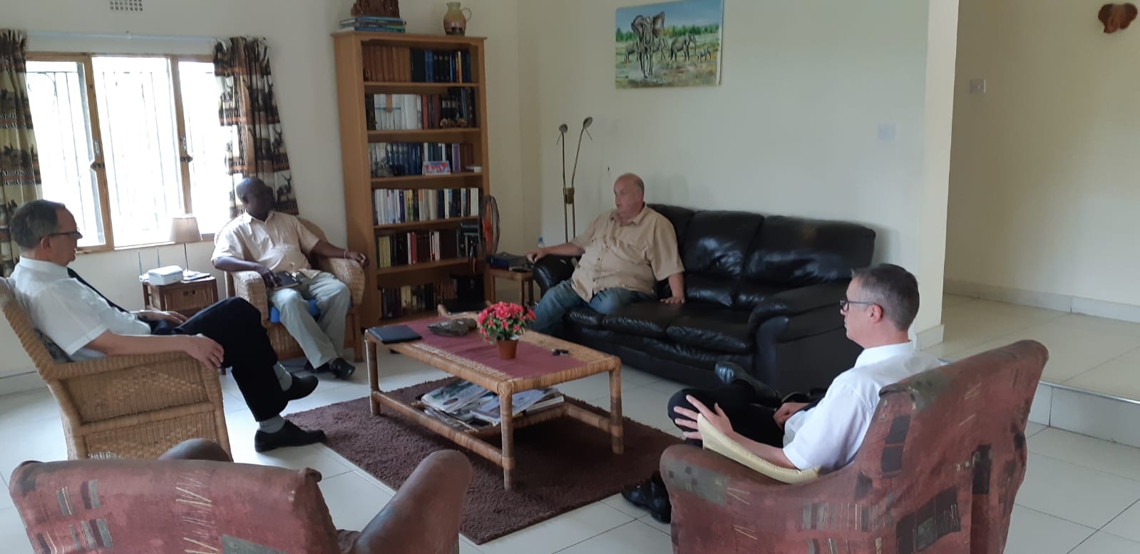 Maandag 25 maart 2019: Vanmorgen voor het ontbijt (fried eggs) eerst wat foto's gemaakt van ons prachtige verblijf met schitterende tuin er omheen. Tegen 10.00 uur arriveerden we bij het FP-house voor een ontmoeting met het synod council, het synodebestuur van de Reformed Presbyterian Church (RPC). Het laatste stukje naar het FP-house was steil en hobbelachtig, maar diaken Draaijer blijkt de landrover goed te kunnen besturen. Met het synodebestuur werden verschillende aandachtspunten uitgewisseld. Na de maaltijd maakten we een groepsfoto. Vervolgens spraken we achtereenvolgens met vertegenwoordigers van twee organisaties die in Malawi veel en goed werk doen: Timotheos en Stephanos. Zo was deze dag vol met allerlei 'meetings'.