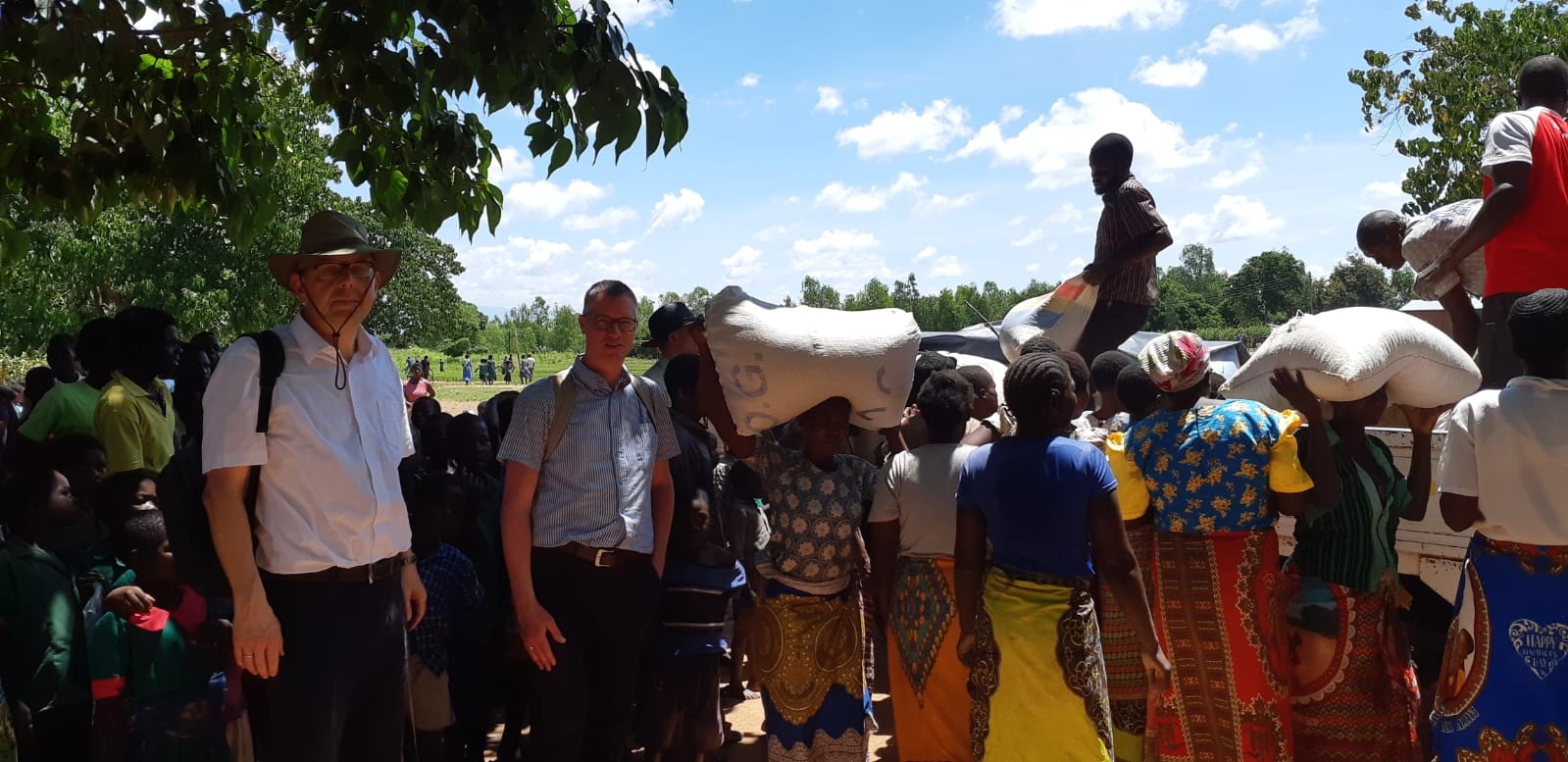 Bij aankomst in Chikwawa zaten de mensen onder wat bomen op ons te wachten. Na de opening met gebed, Schriftlezing en meditatie, hebben we als GDC aan de mensen gevraagd om iets over hun persoonlijke noodsituatie te vertellen. Met name van de slachtoffers van de watervloed, voor wie de tweede voedseluitdeling vooral bestemd was, hoorden we graag hun verhaal. Sommigen vertelden hun verhaal, waren dankbaar voor de hulp, maar gaven aan dat er meer hulp nodig is. Vervolgens wilden we met een boot het door de watersnood getroffen Mkanga bereiken. Omdat de tocht naar dat eiland te lang duurde, zijn we naar Nsanje gereden. Daar verblijven ook slachtoffers van de watervloed. Zij vertelden aangrijpende verhalen over hoe in de nacht het water kwam en hun huis verwoestte of beschadigde. Een vrouw liet ons haar huis zien waarvan een muur is ingestort. Dankbaar is men voor de hulp van de GDC en van God, maar ze vragen om meer hulp.