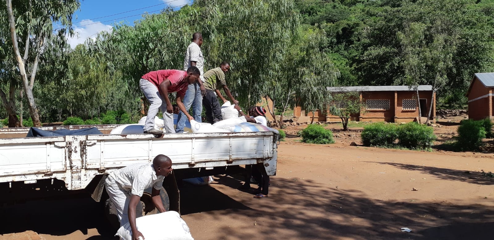 Daarna volgden er verschillende korte toespraken. Van de chief, de leden van de RPC en van de GDC. De mensen waren heel blij dat we kwamen en vroegen om in Nederland voor hen te bidden. Vervolgens werden er 85 zakken mais van de vrachtwagen in een klaslokaal gedragen om vandaag verdeeld te worden. We moesten helaas afscheid nemen om nog een kamp te bezoeken. Daarna bezochten we een kamp in Phaloni, bij de rivier Phalombe. Hier spraken we de mensen opnieuw toe en wezen hen op het Brood des Levens. Vervolgens werden de resterende zakken mais van de vrachtwagen gehaald om uit te delen aan de ruim 500 mensen die gevlucht zijn vanwege de overstromingen in dat gebied. Daarna hebben we verschillende ingestorte en beschadigde woningen in het rampgebied bekeken. Heel aangrijpend! Een oude vrouw wilde niet naar het kamp, maar in haar woning met ingestorte muur blijven! Over de thuisreis hebben we o.a. door een file (!) bij Blantyre erg lang gedaan. Tegen 19.30 uur waren we bij Annie's Lodge.