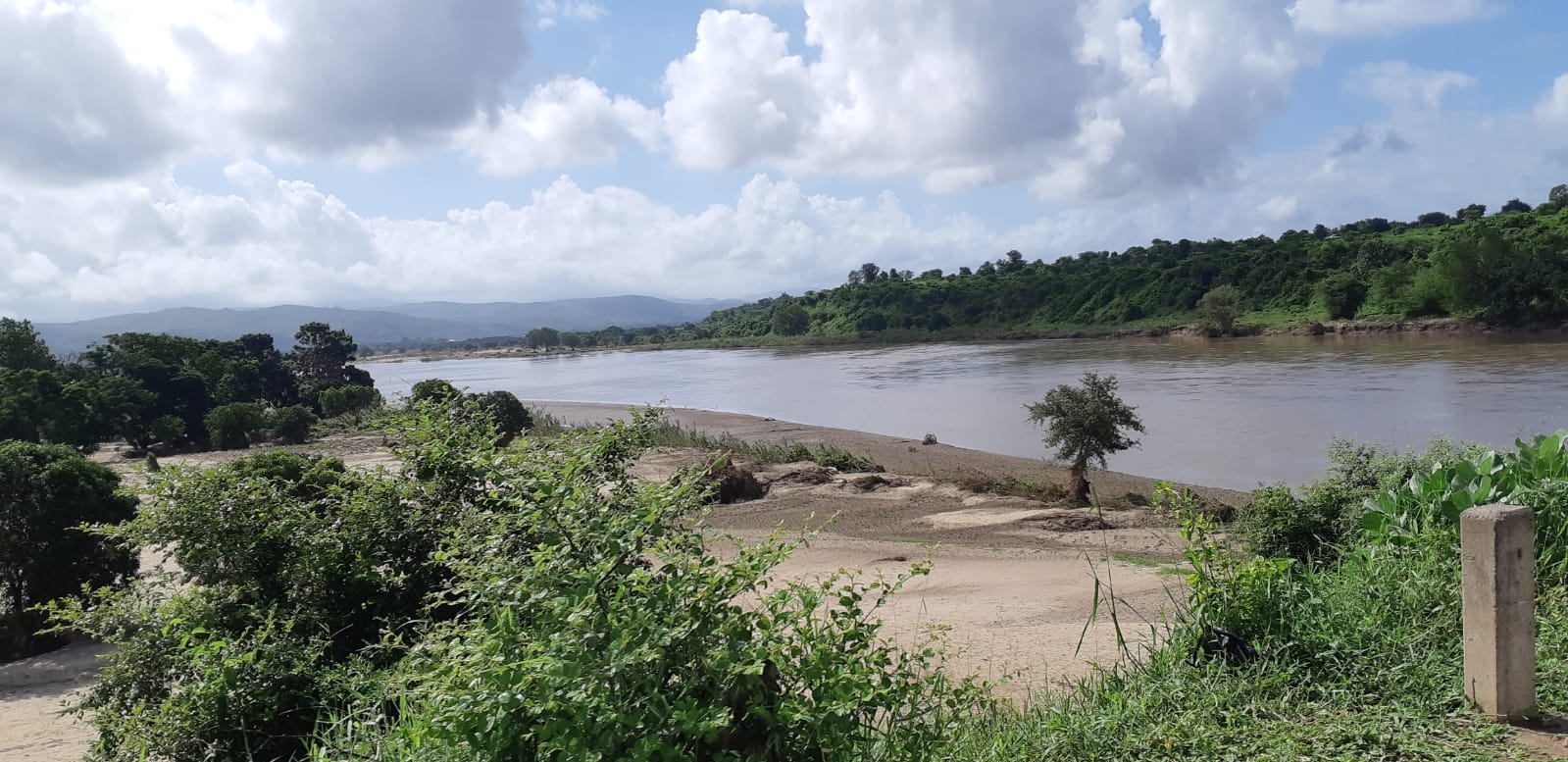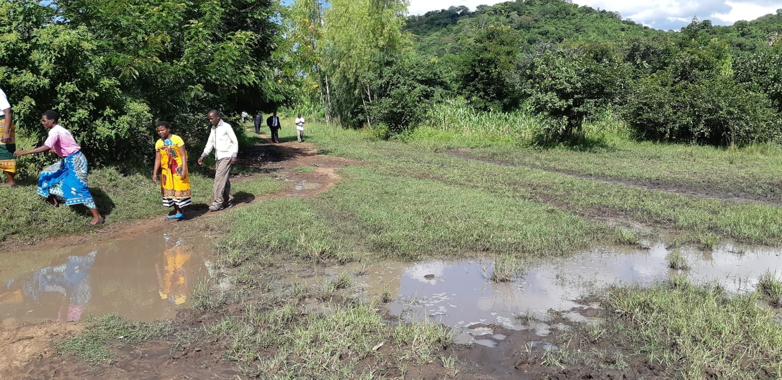 Donderdag 28 maart 2019: Vandaag bezochten we twee plaatsen waar voedseluitdelingen hebben plaats gevonden. Al vroeg vertrokken we naar het zuidwesten van Malawi om in Chikwawa leden van de RPC te spreken die van de GDC in januari en maart voedsel hebben gekregen. Deze voedseluitdelingen werden voor ons uitgevoerd door Timotheos Foundation. Daarom was Paundedi van Timotheos bij ons eerste bezoek aanwezig. Onderweg passeerden we een schitterend berglandschap. Ook kwamen we over de rivier de Shire, die enkele weken geleden ver buiten haar oevers is getreden. Dat geldt ook voor allerlei andere kleinere rivieren. We zagen onderweg waar water had gestaan of nog stond.