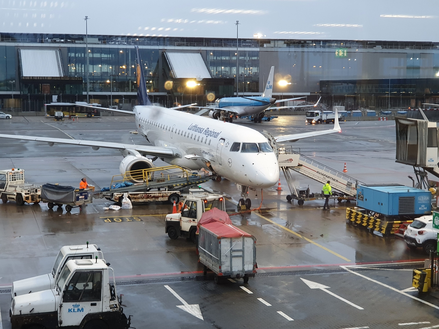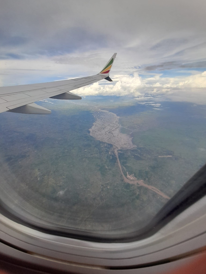 Gelukkig stond het vliegtuig er nog! Na een poos wachten, konden we eindelijk het vliegtuig in en moest we maar liefst drie uur (!) wachten voor dat we opstegen. "Hubrecht en Evert-Jan, zolang het vliegtuig aan de grond houden, hoefde nu ook weer niet!" Het probleem was dat de vliegtuigen met deze temperaturen (rond het vriespunt) voor vertrek een 'deicing' moeten ondergaan, een ont-ijzing van de vleugels. Dat gebeurt op Schiphol heel ouderwets. Er komt een hoogwerker met een man in het bakje en die spuit de ont-ijzing vloeistof op de vleugels van het vliegtuig. We kwamen dus rond 23.00 uur op de luchthaven van Frankfurt aan en toen was ons vliegtuig dat ons naar Addis Abeba zou brengen al vertrokken...
