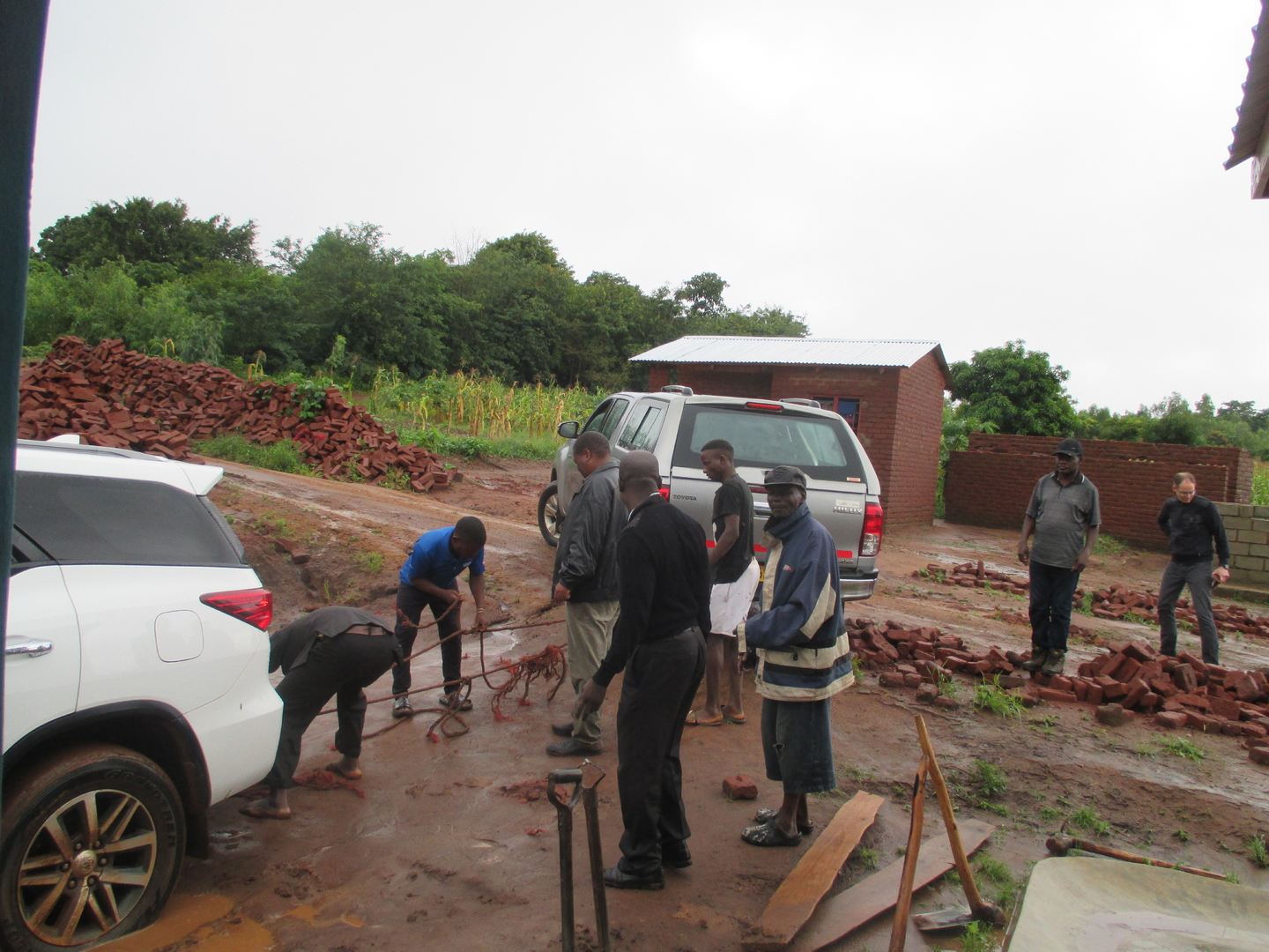 Op woensdag wordt de organisatie van dr. Jumbe bezocht. Dr. Jumbe heeft diverse acvititeiten gestart om zijn zendingsactiviteiten in Mozambique te financieren. De locatie bevindt zicht ten noorden van Zomba. Er zijn een aantal gebouwen in aanbouw, o.a. een gastenverblijf en verblijven voor leghennen/eendagskuikens. Verder is een kantoor/bibliotheek gerealiseerd. De predikanten en ambtsdrager kunnen hier boeken met een gereformeerde inhoud lenen. De bibliotheek bevat veel boeken die afkomstig zijn van o.a. GBS en de Banner of Truth. Veel titels van bv. Ryle, Spurgeon, A.T. Vergunst, etc. De boeken zijn beschikbaar in verschillende talen. Een grote lading nieuwe boeken is onderweg. Een bezoek is gebracht aan de visvijvers die zijn gegraven. Deze staan inmiddels vol met water. In totaal zijn 4 visvijvers gegraven. Hierin wordt op korte termijn gestart met kweken van Tilapia. Na het bezoek loopt de terugreis grote vertraging op omdat de auto vast komt te zitten in de modder.