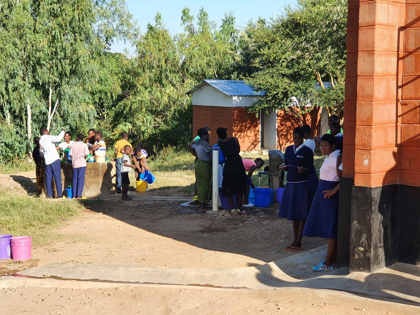 Toen we bijna bij de school waren, kwamen we een auto met daarin ds. Van der Bas en zijn vrouw tegen met nog een andere auto volgeladen met VLC-leerlingen die zo'n 12 dagen in Malawi verblijven. Zij hadden net de DLCA bezocht en daar veel indrukken opgedaan. Nu waren wij aan de beurt. We spraken eerst kort met de directeur en daarna bezochten we een klas leerlingen, keurig in school uniform! Misschien moeten we dat schooluniform ook maar op de Nederlandse reformatorische scholen gaan invoeren, dan hoeven we niet meer te discussiëren over de lengte van de rok en de gaten in de broek. We maakten ook een rondleiding over het terrein. Het is een school waar Gods Woord centraal staat en die onze steun hard nodig heeft.